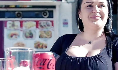 la chica tetona ryan smirks deja que un tipo guapo la golpee en varias poses