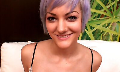 après avoir décemment inhalé une bite aux cheveux bleus, la poupée punk keoki starlet se déchire pour l'orgasme