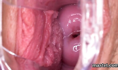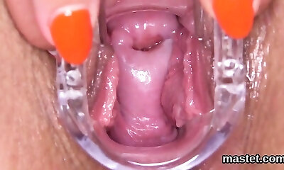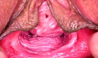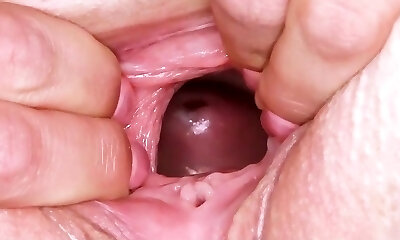 vergine snella e jiggish che mostra imene in primo piano
