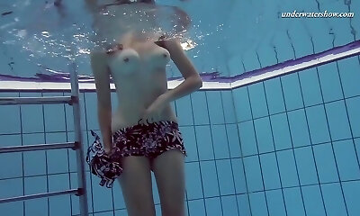 favoloso zenzero-haired chiamato katka lampeggia la sua figa in piscina