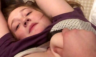 kuszące rudowłosy dostaje jej puffies gargled przez jej kochanka