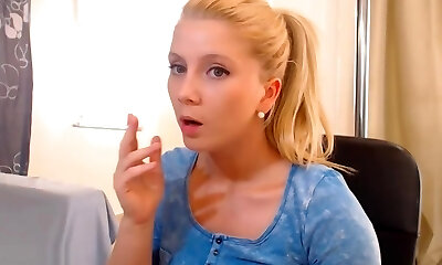 Lovely light haired bosomy web cam doll was masturbating after stripping