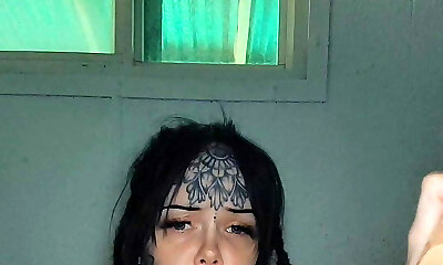 mittwoch addams zeigt goth deepthroat technik! erstaunlicher pferdeschwanz, der kehlenfick abspritzt!
