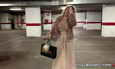 adolescente caliente que muestra el coño al lado de los centros comerciales