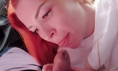 vidéo pov amateur d'une rousse timide suçant une bite dans la voiture