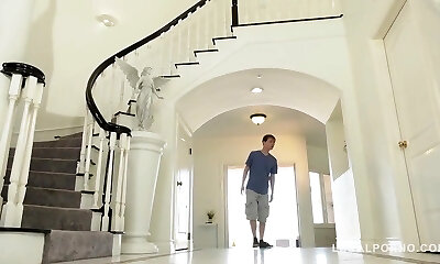 package delivery uomo cums su sfarzoso milf culo