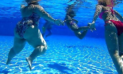 ambisexual grandi tette beotches boinking con humungous beefstick in piscina