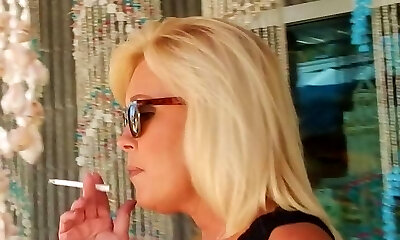 kinky cagna matura fuma un ciggy e le dita la sua fessura