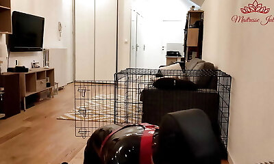 maitresse julia-latex femdom - il mio cucciolo vergine marionette ottiene il suo culo inchiodato-strap-on dildo-pegging-sborra indignazione