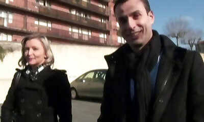 Mature French babe Emilie wraps her lips around a rock-hard shaft
