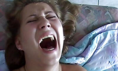 неопытная куколка впервые в жизни прикладывает большой член к своей сжимающей член вульве