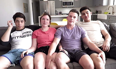 молодая школьница и отчим обнаруживают, что ее двоюродная сестра мастурбирует в своих стрингах, и получают анальный удар