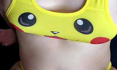горячая французская девушка, делающая косплей пикачу, получает толчок