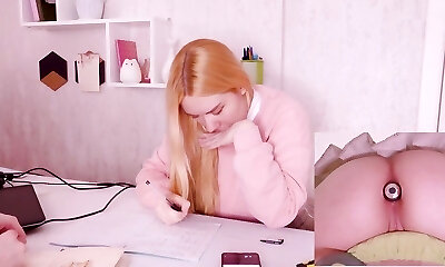 помогаю своей сводной сестре с домашним заданием, но она слишком отвлечена вибро-пробкой в своей заднице!