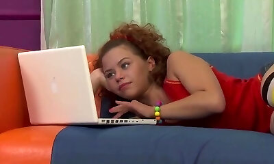 симпатичная рыжеволосая студентка фурийш дрочит на камеру
