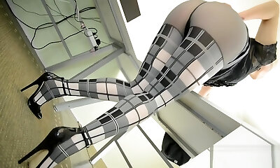 专横秘书抽搐在桌子上的丝袜和吊袜带